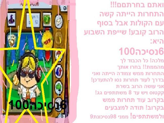 כן כן זוכרים את התחרות?!! אז הנה התוצאה : 6נסיכה1000 זכתה! כפיים! יפה לך בקרוב עוד תחרות אופנה !!! סורי על התמונה המטושטשת...