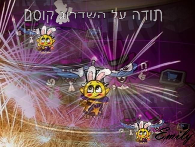 אומנם אין לי את השדרוג אבל אני מודה בכל זאת כי אני נהנת מכל הקסמים שמכשפים אותי ואת החברים שלי אז תודה צוות מיקמק באמת תודה רבה(: