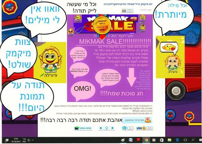 היי מיקמקים וצוות מיקמק רציתי לומר תודה רבה רבה רבה על תמונת היום! צוות מיקמק אתם שולטים וכל מילה מיותרת בקיצור תודה אוהבת אתכם המון המון המון וכל מי שעשה לייק תודה. אוהבת אתכם מלא פיורלה.