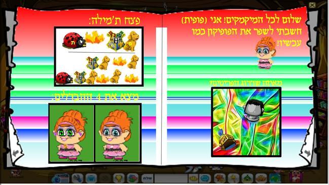 יאא מיקמקון ממקמק ! פופית אין כמוך ! ממש אהבתי את הפינה של מצא את ההבדלים |