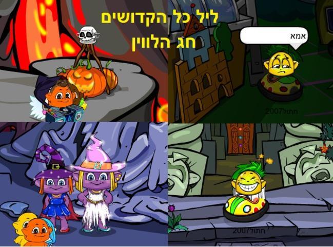 היי כולם!! חג האלווין הגיע! כל שנה בתאריך ה1 בנובמבר נחגג החג. בערב החג ה31 באוטובר יוצאים הילדים בלילה עם תחפושות מפחידות ועוברים מכל בית לבית ושואלים: "תעלול או ממתק?" אם יש מישהו בבית אז הוא מביא להם ממתק. ואם הוא לא אז הם זורקים עליו ביצה! כך שתדאגו לממתקים בחג.. את החג חוגגים בעיקר במדינות אנגליה, אירלנד, צפון אירלנד, סקוטלנד, ויילס, קנדה וארצות הברית. משמעות החג היא זכרון לכל הנשמות. ולכן החג ניגמר ביום כל הנשמות!! אז אני מקווה שאהבתם את היצירה בבקשה לעלולת אותה!!! בבקשה אם אפשר לתמונות היום.