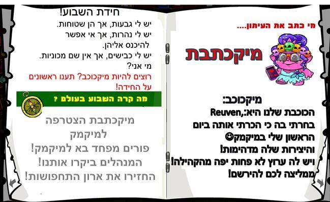 תכירו אני מיקכתבת אני אתן לכם עדכונים מהעולם של מיקמק בכל מיני דרכים בחרתי לראובן לכוכבת הראשונה כי היא המיקמקית הכי מושלמת!
