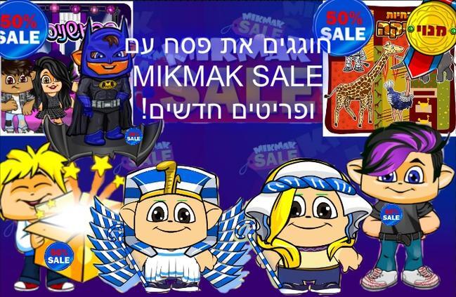 חוגגים את פסח עם פריטי פסח כחול לבן וMIKMAK SALEֱֱֱֱֱֱֱֱֱֱֱֱֱֱֱ!!! 50%אחוז הנחה על כל החנות!!!! איזה כיף!!!!! כל השדרוגים ,מנוים,בובות,תיקים,מחברות,בתים ועוד הרבה דברים!!!!!שווה לקנות!! אולי קונים לי!