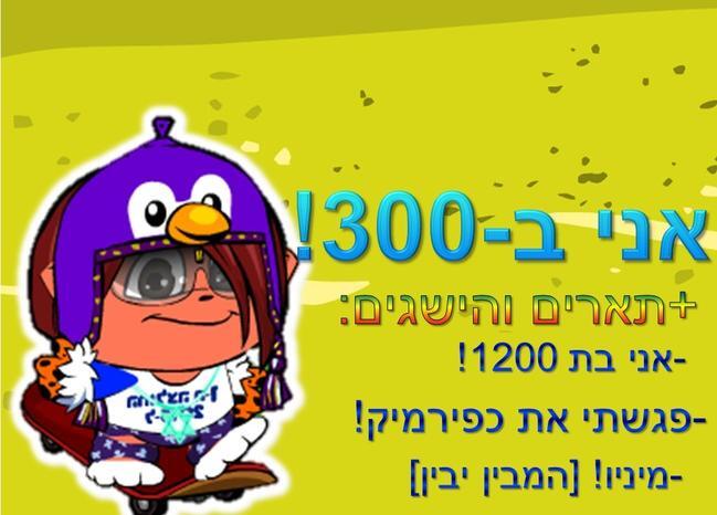 מזל טוב! , הגעת די מהר מ200 ל300! , יש לך יצירות מדהימות! |