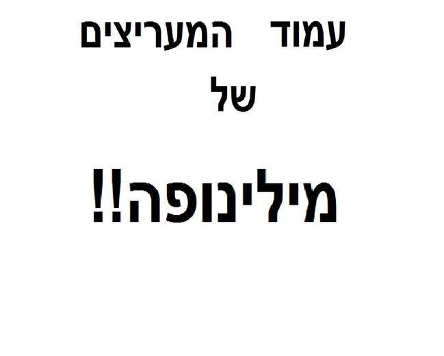 שלום לכולם היום אני פותחת את עמוד המעריצים של מילינופה היום בבלוג אני שאלתי את מילינופה כמה שאלות ואלה התשובות שהיא נתנה לי: למה היא לא העלתה הרבה זמן -היא שוקלת אם להישאר מה היצירה הבאה שהיא מתכננת - אין תשובה [היא לא רצתה לענות] מתי היאר תעלה את הפרק האחרון בסיפור "אני אוהבת שופינג" - בעוד חודש יעלה הפרק האחרון