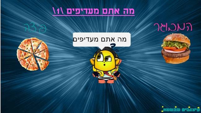 פיצה זה הדבר הכי טעים שקיים (אני צמחוני לכן ברור שלא אוכל המבורגר). |