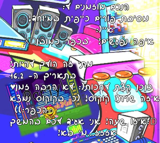 אשמח לבוא רק מקיסני לא מימני(לא בטוח שיגיע)אוהבת כל המיקמקיות שלי! |