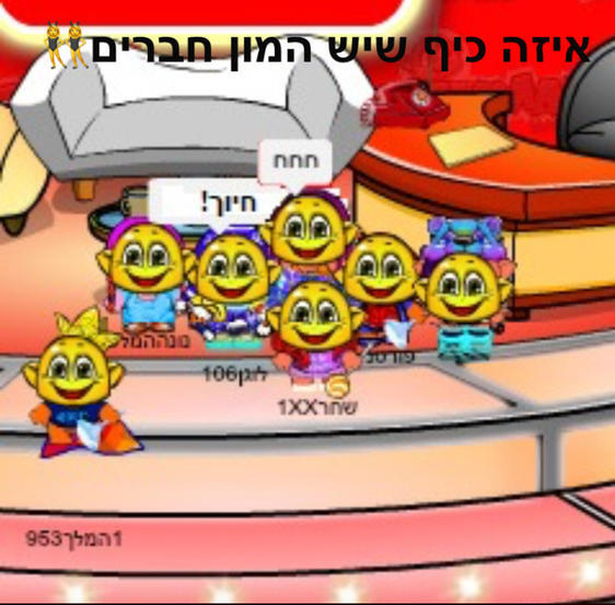 היי חברה! אזז הכרתי המון חברים ממש נחמדים וביליתי איתם במשך כל היום! ואלה השמות שלהם: טליה770, המלך1953, פורטני1, נונההמל6, xxשחר1, ליבי2101. תודה רבה שביליתם איתי את משך היום! אשמח שנעשה את זה שוב