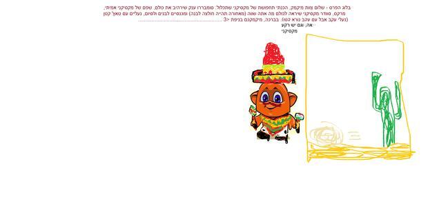 אז היוש, כתבתי לכם בקובץ, אבל אכתוב לכם פה במסודר. התחפושת תכלול כובע סומבררו בעל אנימציה שהוא לפעמים מקפץ, מרקס, שפם מקסיקני, רקע עם קקטוס והכדור שתמיד יש אותו במערבים פרועים. יהייה למיקמק גם נעלי עקב קטנות (בלי עקב גדול). יהייה לו סוודר מקסיקני עם חולצה מאחור ומכנסיים לבנים. בנוסף, יהייה גם קסם שבו המקסיקני מתחיל לנגן במרקס.