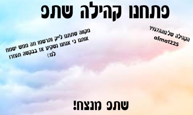 מקווה שתעזרו לנו להגיע בנתיים מעל 20 עוקבים בבקשה
