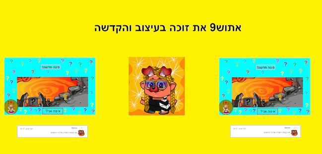 היי שמשות אז סוף סוף הזוכה לפינה איפה אני והזוכה היא הוא הם הן... שוב ראיתם את היצירה נכון? הרסתם לי את הקטע אז הזוכה היא אתוש9 את זוכה בעיצוב והקדשה אחרי שתצא המיקשימה אני אוציא עוד אחד כל הכבוד גם לשאר שכתבו לי:) אשמח שתעשו לי עוקב קיץ רות סוף
