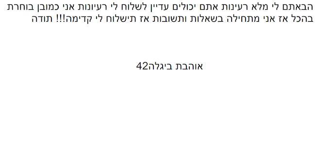 תודה רבה ביגלה42 אבל אין לי רעיון אני יחשוב על זה |