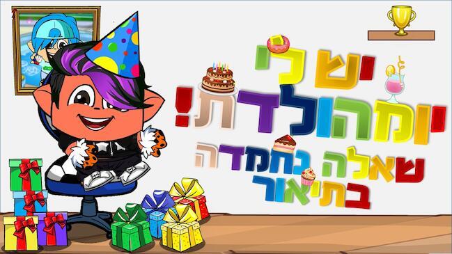 מזל טוב! אני יודעת שאני קצת באיחור... אבלללל מזל טוב! ברכה: שתזכה שכל משאלות ליבך התמלאו לטובה בריאות ואושר! שנה וחתימה טובה! חחח טוב נגמר לי הרעיונות קיצר תתברך בהכולל! חחח ותשובות לשאלות ששאלת! 1)אמ חושבתתת או שרית צהוב או קיצי או כובע מחליף חח מלא! טוב הבא 2)הכולללל חחח לאדעת חיחי