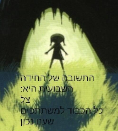 היי חברים ממצב? אז בטח כולם מחכים לשמוע מה התשובה של החידה השבועית האמת שהיא היתה קשה קצת הפעם אבל ענו כמה נכון אז התשובה היא: צל!!!