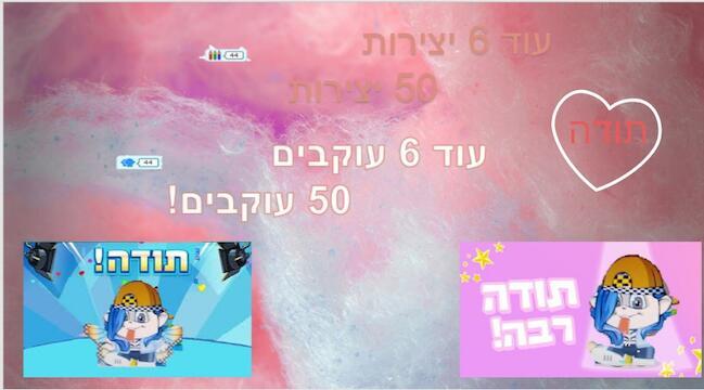 היוש לכולם אז כן כמו שראיתם בכותרת חמישים כפול שתיים כי עוד שש עוקבים חמישים עוקבים ועוד שש יצירות חמישים יצירות למרות שעכשיו היצירה הזאת הורסת את הכל חח כי עכשיו עוד חמש יצירות חמישים יצירות חיחי אז תודה ענקית על הדרך שנתתם לי ועל האנרגיה הטובה להמשיך לעשות עוד ועוד יצירות ותודה על התמיכה שלכם ועל העוקב שכול אחד ואחת מכם ששם תודהההה! אז מקווה שאהבתם:) ושתיתנו ליק תגובה ועוקב! תודהה רבהה:)! |