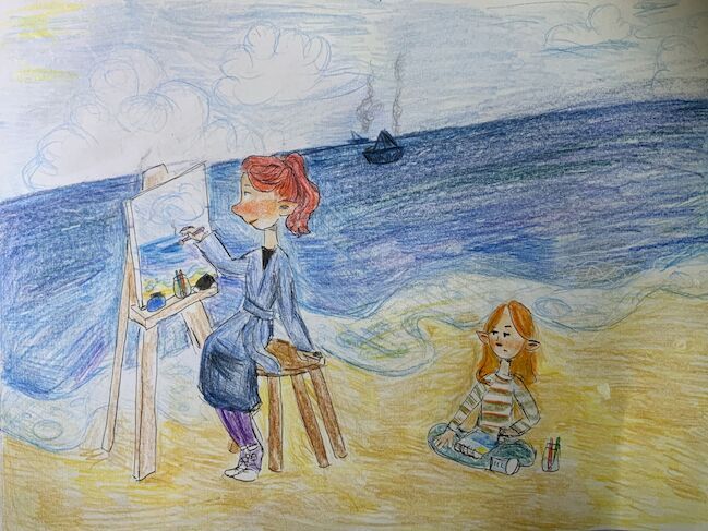 ציור מקסים! אפשר לראות שהציור חופשי ומלא בצבעים רגועים. אני אוהבת את הרעיון שלך, הים נותן המון השראה לציור ונותן תחושה של רוגע・ω・ |