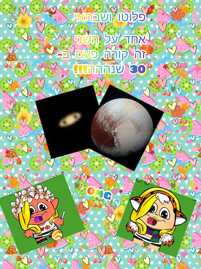 אז היושש כוכבים שלייייי מה ניש אצלי הכל פאןןן היום קרה משהו שקורה פעם בשלושים שנההה זה שאמא שלי הייתה בת שמונה עשרה חח מה שקרה זה שבתאי ופלוטו היו כל כך קרובים אחד לשני עד כדי כך שהם נראים כמו כוכב אחד וזה בר בטיימינג טוב כי אני בונה דגם על מערכת השמש לוללל חחח טוב אז תתנו לי רעיונות לדגם ויאללה בה בה ביי