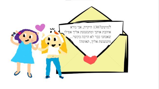 חח היי כולם!! יש לי חברה (במיקמק) שקוראים לה מושש1307 ובזמן האחרון אנחנו בקושי נפגשות ואני נורא מתגעגעת אליה!! לכן עשיתי את הברכה בישבילה ואפילו ציירתי אותה ואותי עושות סלפי!! לקח לי יחסית מלא זמן לצייר אותנו ונורא השקעתי!! מקווה ליזכות ובהצלחה לכולם! אה!! ועוד דבר אחרון.....- ליאת גם אמרה שכדאי גם לתת אתגר אז הנה: לצלם את המיקמק שלכם עושה תמונה מצחיקה ולעלות לקהילה!! חח מחכה לראות את התמונות יאלה ביי!!!