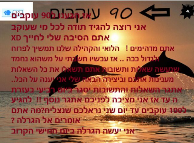 אז הגענו ל90 עוקבים אני רוצה להגיד תודה לכל מי שעוקב אתם הסיבה שלי לחייך XD אתם מדהימים ! הלואי והקהילה שלנו תמשיך לפרוח ולגדול ככה .. אז עכשיו חשבתי על משהוא נחמד שנעשה שאלות ותשובות אתם תשאלו את כל השאלות מענינות אתכם וביצירה הבאה שלי אני יענה על הכל.. אתגר השאלות והתשובות יסגר ביום רביעי בעזרת ה עד אז אני מציבה לפניכם אתגר נוסף !! להגיע ל100 עוקבים עד יום שני נראלכם שנצליח ?מה אתם אומרים אל הגרלה ? אני יעשה הגרלה ביום חמישי הקרוב בברכת ה-צ- ל-ח-ה יהלום1167