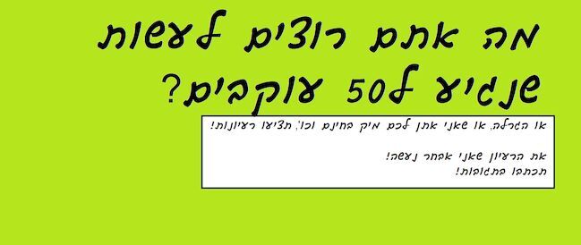 אממממ המלצת לדעתי זה נחמד אפשר גם לעשות כל מיני עיצובים וכאלו... אני ממש אשמח להקדשה אם באלך... בהצלחה רבה רבה! שוקו:) |