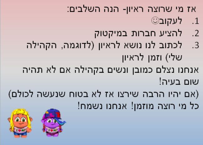 ואם לא יהיו בעיות של לשלוח אז אנחנו נעלה את הראיונות לקהילה!