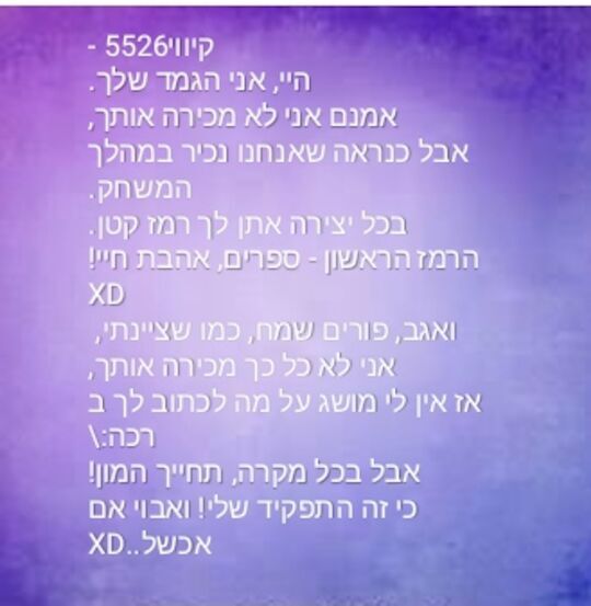 איזה מוזר זה להתחיל יצירה בלי הפתיח:) אז הקהילה הזאת היא בשביל הגמד ענק של לבור5, והנה המשימה הראשונה - ברכה לענק שלי, שהוא קיווי5226. קיווי, הקהילה הזאת מוקדשת כולה לך, ו... מצטערת שזה לא היה כל כך ברכה.. אז, פורים שמח! ונתראה כשהמשימה הבאה תהיה מוכנה.