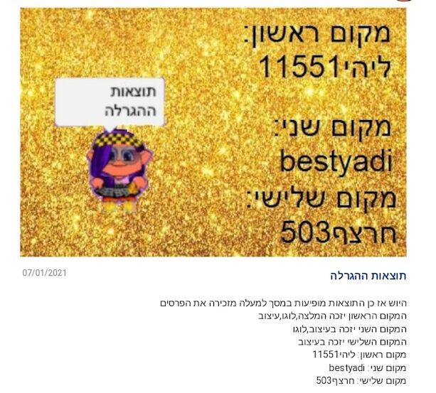 אוקיי לכל מי שזכה נא ליצור איתי קשר במיקטוק על מנת לממש את הזכייה