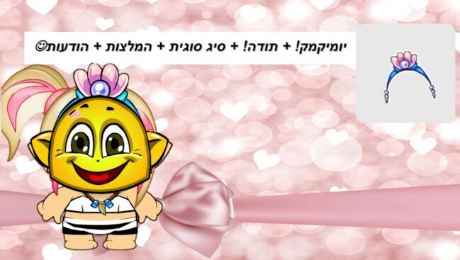 מהמם! יום מיקמק שמח^^ כיף לך שהישגת קשת פנינה:) יש לי קהילה אשמח שתראי אותה ותמליצי עליה(: |