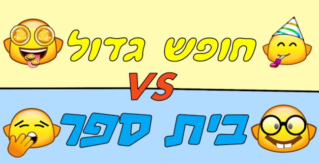 אני אוהבת את שתיהם אבל טיפה יותר חופש עכשיו אני ממש מחכה כבר לבית ספר כי אני הולכת לבית ספר חדש |