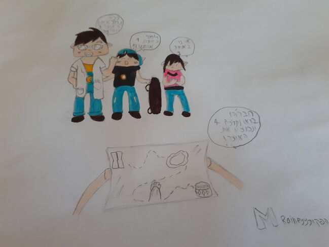 בתמונה רואים אותי (Raineyy) מחזיק את המפה ורואים את סאני מכווץ את מקס ואת זואי בשביל למצוא את התיבה יותר מהר והם כועסים עליו :D