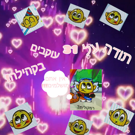 מהמםם:) כל יצירה מחדש פשוט מהממת♥♥ אז איך את רוצה שלא יעקבו אחרייך? יאללה בקרוב 100!! |