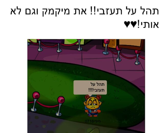 תהל לאאא!!! אל תעזבי בבקשההה!!! אנחנו רוצים אותךךך!!! לאאא על תעשים את זההה!!!! לאב יו טוווו |