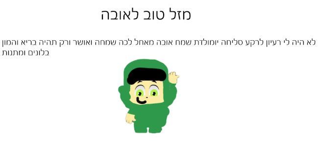 מזלט אובה!!! אה, כתב לי טובה חחXD *מתקנת* המון אושר בריאות ושמחה!!! |