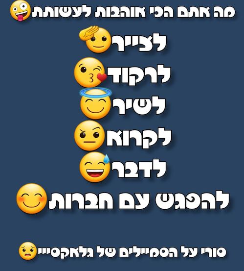 כל מה שכתבת!!!! מה רע בסמיילים של גלקסי? |