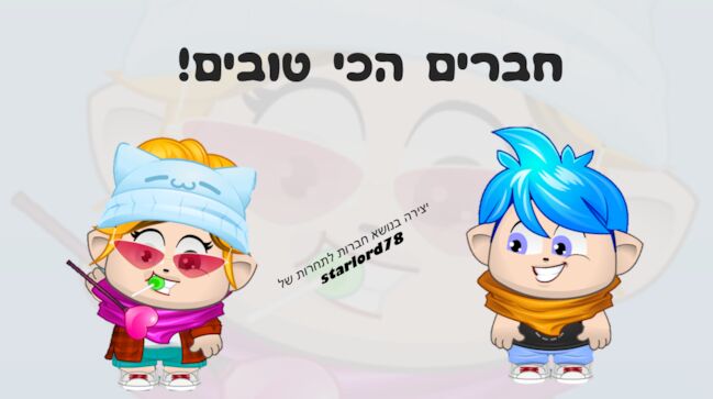 היי מיקמקים! סטרלורד עושה תחרות שצריך להעלות לקהילה יצירה בנושא "חברות" והכנתי ציור הנה הוא כאן למעלה⬆ אני חושבת שזה טוב שיש חברים הכי טובים גם במיקמק וגם במציאות, נגיד פעם הייתה לי חברה הכי טובה במיקמק והיא התחילה להתנהג אליי לא יפה ומאז לא נפגשנו... טוב אז בהצלחה לכולם! תהנו! יום ממקמק!