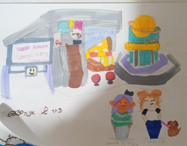 ניסיתי לצייר את מיקמק בעוד 32 שנההה •המעבר בין העיר לקלאב הפך לתחנת רכבת משוכללת!! הבנק הפך לבנק שהוא גם תחנת רכבת, ובו אפשר לקנות כרטיס לרכבת בחמישה מיקביט בלבד! חשבתי להפוך את המשחקייה למרכז אימוץ לבעלי חיים ומשחקים ואביזרים לחיות, ואת המשחקייה ביער הקסום להפוך למשחקייה אמיתית שאפשר להיכנס אלייה ולשחק בה את המשחקים שיש במיקמק במשחקייה בעיר, או להפך (תבינו למה דווקא בעלי חיים בהמשך) אבל לא היה לי כבר זמן לצייר את זה... בכל מקרה, חשבתי גם שנכון שיש את הציון לימים בין לאומיים במיקמק אחת? אז למה שזה לא יהיה גם בשתיים? אז הלכתי על הכי קל כי לא היה לי כל כך זמן, והוא (תופיםםםםם) יום הפיצה הבין לאומייי שמתי הוא? אין לי מושג-_- אבל בטוח יש יום כזה מתישהווו אז כן, נקווה שבעתיד באמת יהיה ציון לימים בין לאומיים גם במיקמק 2 (; עוד דבר שחשבתי עליו הוא עמדה שבה אפשר לעצב פריטים למיקמק (באזור הMIX בעיר); יש שם לוח עם הכיתוב DIY (Do It Yourself), שזה אומר עשה זאת בעצמך(: ושם אפשר ללחוץ על לחצן הפלוס ותמורת מספר כוכבים מסויים לעצב (לדוגמא; חולצה-25 כוכבים,כובע-15 כוכבים, משקפיים-10 כוכבים וכדומה..) ועכשיו לדבר שהכי אהבתייי זוכרים את חנות האימוץ ממקודם? אזזזז חשבתי שאולי יהיה מגניב אם יהיו לשחקנים במשחק בעלי חייםםם!!! לי לדוגמא יש בבית כלבה חמודה והיה מגניב אם הייתה לי חיית מחמד חמודה ומגניבה גם במיקמק(; כמובן שאפשר לבחור אם לאמץ או לא ואיזה(; אז ציירתי אותי (אנה6230) עם כלבה חמודה (בהתאם למה שכתבתי מקודם) ואת חברה שלי (שקוראים לה בציור דרך אגב החברה של אנה6230, מקורי ביותר(; ) עם חתול חמוד על הראש (שאין לנו מושג איך הוא הגיע לשם אבל לא נוראאא><) וזהו ממש ממששששש השקעתי וממש מקווה שיש עוד מספיק זמן ושאזכהההה ❤️ ביייייי נ.ב לא צבעתי הרבה ועברתי הפיילוט כי כמו שאמרתי לא היה לי זמן ואני חייבת כבר להעלות את זההה