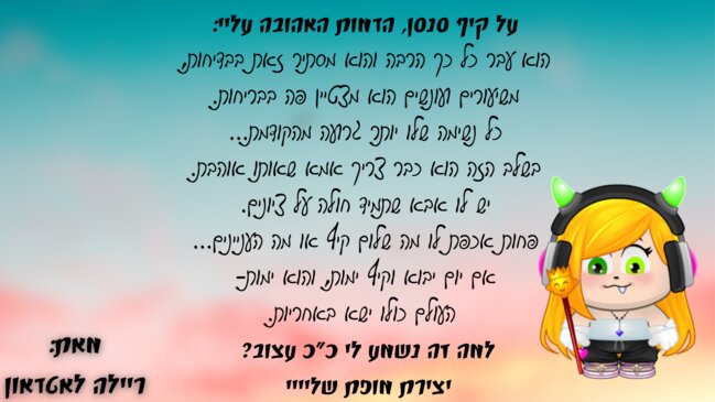 וואייי לא קראתי שומרת הערים האבודות אבל כולם בקהילה מדברים עלזההה אחלה שיררר כל הכבוד!! הצלחתי להכיר את קיף בלי לקרוא את הספרים בכלל!! -מרגישה תצמי גאונההה- ✨ |