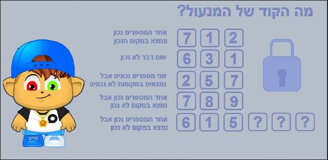 הקוד הוא: 572 :) חידה ממש כיפית! |
