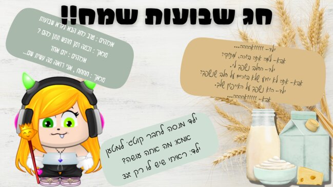שבועות שמח! עריכה מהממת! רפואה שלמה (: |