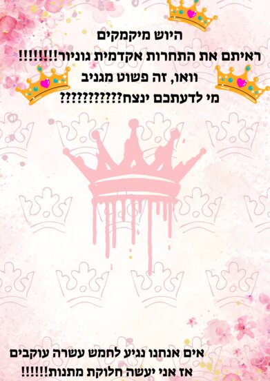 אני מאוד מקווה שאחד מכם יזכה, ואים אתם רוצים חלוקת מתנות אז צריך להגיע לחמש עשרה עוקבים