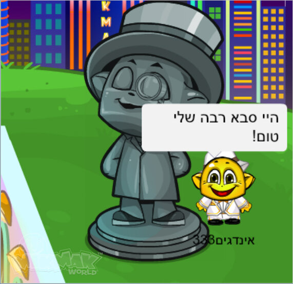 וטום היה בצבע גוף צהוב והיה לו משקף וכובע והוא אפילו היה ראש העיר הראשון במיקמק! וגם הוא היה הכי עשיר במיקמק! טום: וואו איזה כיף החיים האלה!