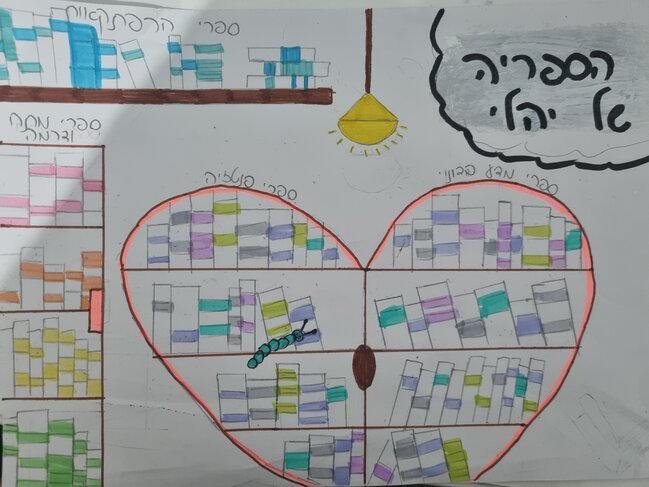ציירתי ספריה שיש בה ספרים בכל הנושאים בכל הגדלים בכל הצבעים וממש השקעתי