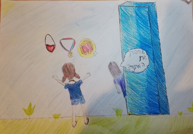 ציירתי כאן שתי ילדות, הילדה על השיער הפזור מסמלת את צוות מיקמק, והילדה עם הקוקיות, מסמלת אותי.