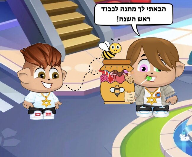 המתנה היא צנצנת דבש ובתוכה מלא מלא ממתקים - כדי שתיהיה לו שנה מתוקה, וגם לכםם!