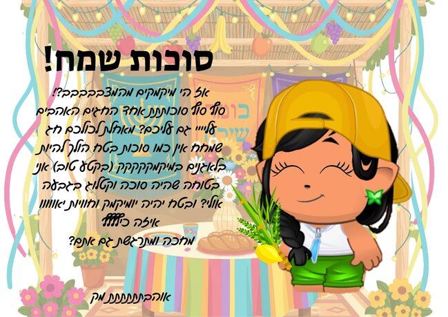 אז היייי כבר כתבתי הכול שם........ אבלללל חג שמח לכולםםםם ואבא שלי נולד בסוכות ואין לנו מושג מה לעשות לו חחחח נמצא אנחנו קרובים