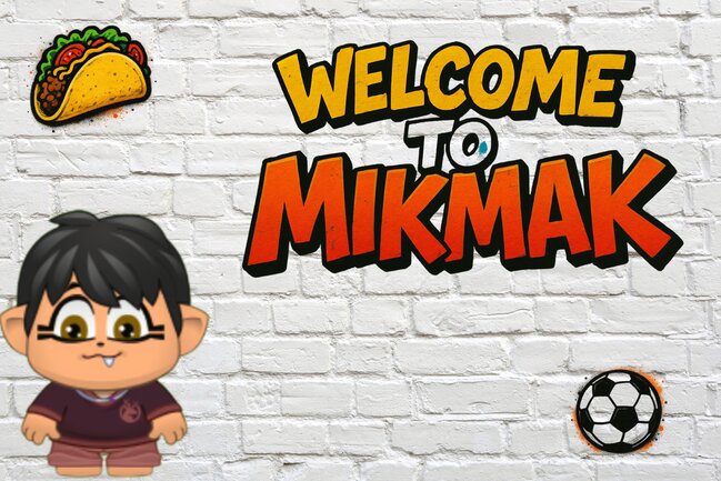 היי מיקמקים מה שלומכם? אז היום המקשימה השניה שלי ואני ממש מתרגש ומקווה לזכות הפעם אז מה ערכתי בעצם אותי גרפטי גדול באנגלית שרשום ברוכים הבאים למיקמק הוספתי גם כדורגל וטאקו הכי טעים שיש וזהו מקווה לזכות בהצלחה לכולם