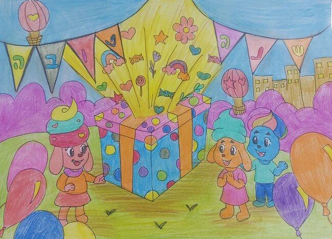 העיר שלי בציור מלאה בצבעים שמחים, בדיוק כמו שאני מאמין שעולם טוב וצבעוני אמור להיראות
