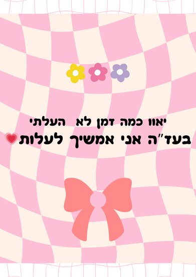 יאוווווו טוהר איזה יופי תקשיבי כל יום אני נכנסי לקהילה כדי לבדוק אם את העלת משהו ופשוט לא העלת כלוםם איזה יופי שאת חוזרת עלינו |