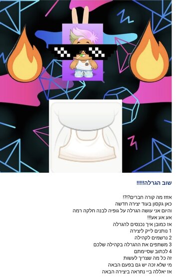 ואמר שנשתף את זה אז הנה שיתפתי בתיקווה שאצליח להשיג את הגופיה בהצלחה לכול מי שמישתתף