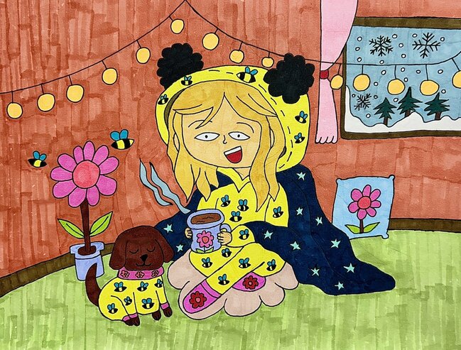 איזה ציור מטורףףף תקשיבי זה אחד היפיםםםם ממש אהבתי את הספל עם הפרח כי משהו בו ממש יפה אני לא יודעע הוא יצא הכי טוב שיכל לצאת וזה מה שהופך אותו למושלםםם בגלל שאני אוהב כלבים אז אני גם מאוד אהבתי את הכלב והפיג'מת דבורים התואמת והמתוקה שלווו מהחלון רואים שלג ועצים וזה יצא מטורף ומוסיף אווירה של חורף ועכשיו נדבר על החלק החשוב הדמות המרכזיתתת יצאה מטורפת במיוחד הפיג'מה המתוקה של הדבורים מדהימההה וזה רעיון ממש מקוריייי את חייבת לזכות לא סתם זכית בתמונת היום!!! |